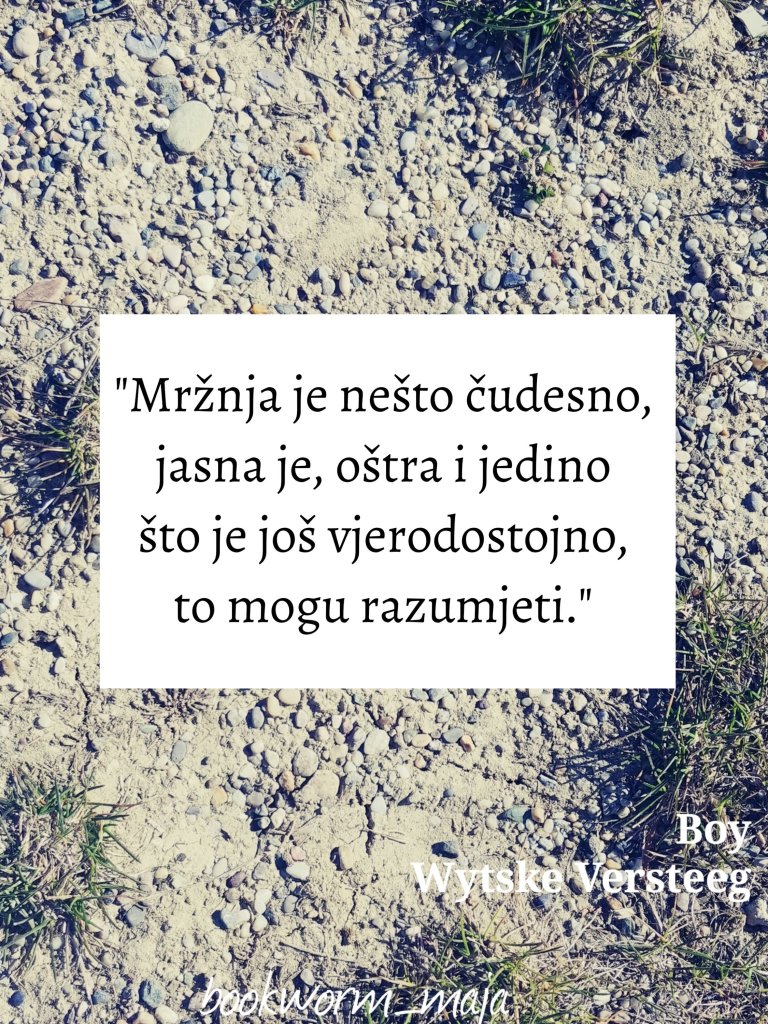 Knjiga me duboko potresla. Ne vjerujem da ću ju ikada više čitati. Ne zbog toga jer nije dobra knjiga, dapače, knjiga je izuzetna, već zbog tog silnog bola koji se prelijevao iz svake stranice knjige i zaposjedao moje misli, mijenjao mi raspoloženje u paniku i anksioznost.