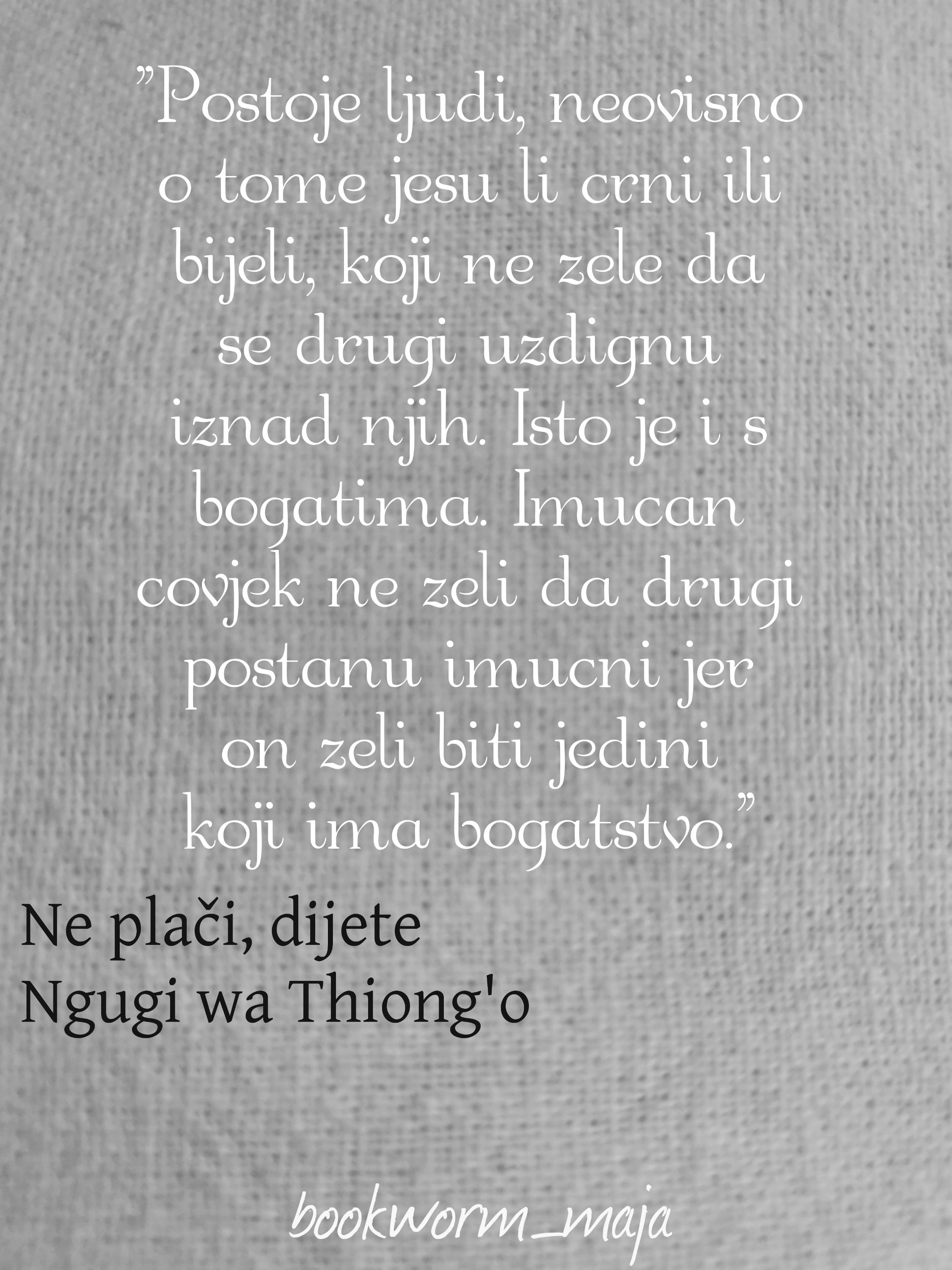 Potresna i iskrena priča o teškom životu u Keniji. Životu crnaca pod čizmom okrutnih bijelaca. Gramizivost bijelaca i želja za bespotrebnom osvetom. Nezahvalnost.