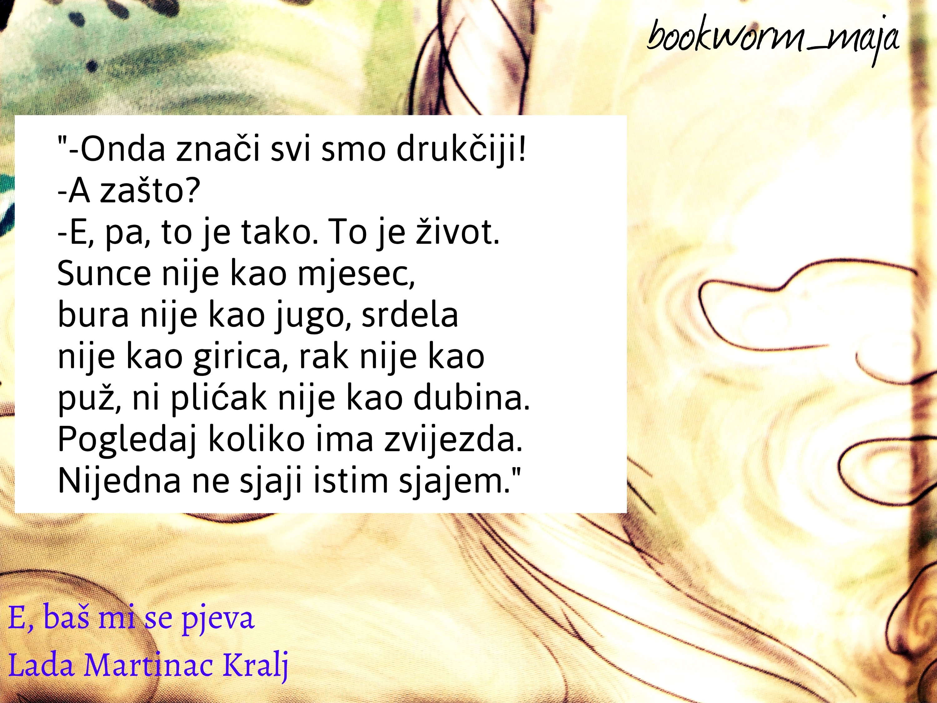 Drago mi je vidjeti da naši izdavači izdaju ovako kvalitetne knjige za djecu i mlade. Drago mi je vidjeti da autori pišu ovakva djela. Ilustracije su lijepe i maštovite, a opet jednostavne.