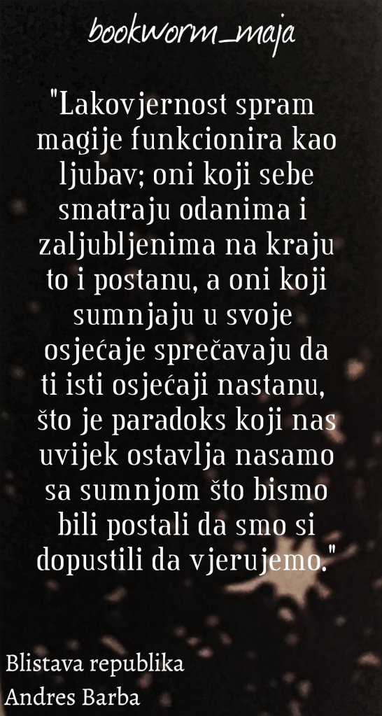 Blistava republika je maestralna i mračna priča o vandalizmu i strahovladi divlje djece nad stanovnicima grada. Trideset i dvoje djece koji su gradom sijali strah i trepet, djeca koja su stvorila svoju civilizaciju u divljini i svoj jezik. Djeca koja su odrasla prije nego je to bilo potrebno.