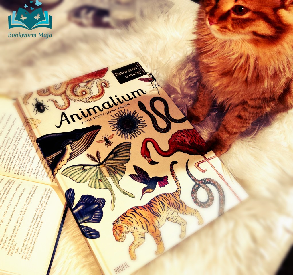 Knjiga je bogato i vrlo inteligentno dizajnirana, a njezine proporcije su tolike da mi ne stane ni na jednu policu. I zato ima posebno mjesto u kući. Vidljivo mjesto gdje ju svi mogu uzeti u ruke i prolistati, a to i rade- knjiga ih hipnotički privlači svojim famoznim coverom sa isprepletenim životinjama i pozlaćenom ulaznicom za posjet muzeju životinja- Animaliumu.